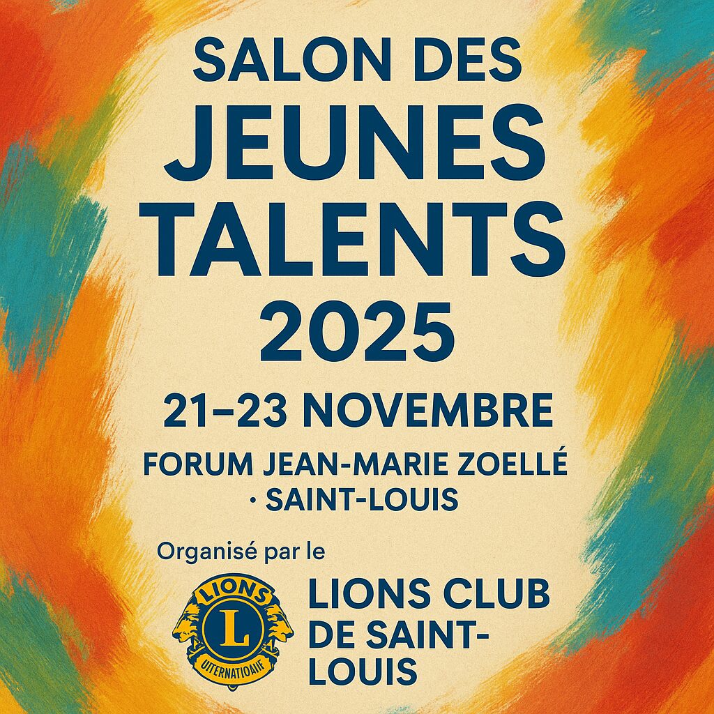 Du 21 au 23 novembre 2025, le Salon des Jeunes Talents fait son retour au Forum Jean-Marie Zoellé à Saint-Louis. Organisé par le Lions Club de Saint-Louis, cet événement met en lumière la créativité de la jeunesse de notre territoire et s’inscrit pleinement dans les valeurs du Lionisme : service, engagement, soutien aux jeunes et promotion de la culture.