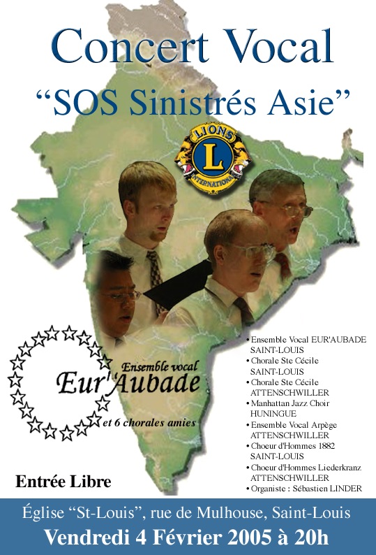 « Je pense aux chorales de la région frontalière, notamment à Eur’Aubade, dont les dirigeants, Denis Mangold et Raymond Sutter, président et chef de chœur, ont spontanément adhéré à notre élan de solidarité et ont permis l’organisation du concert qui eut lieu le vendredi 4 février à Saint-Louis. »