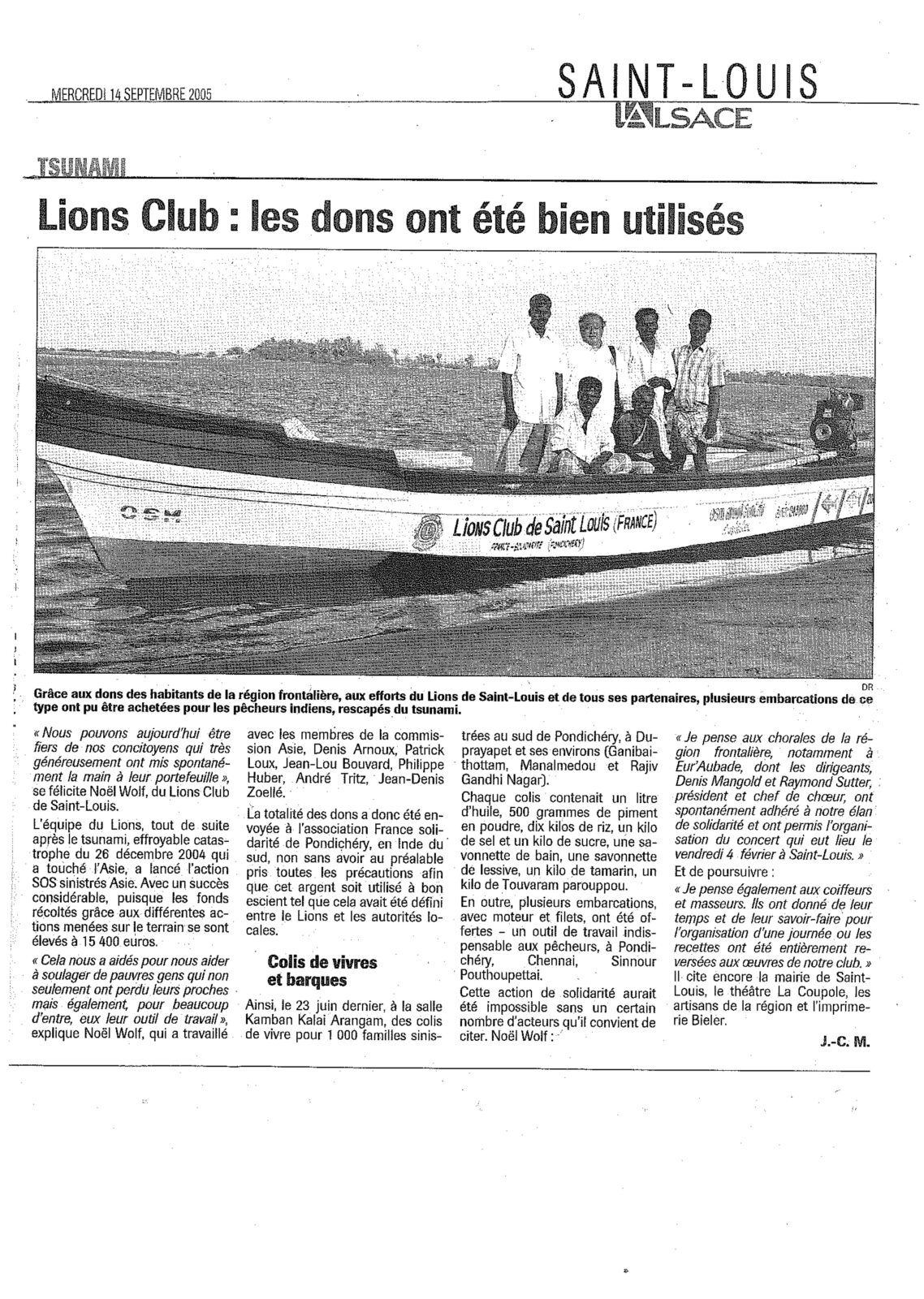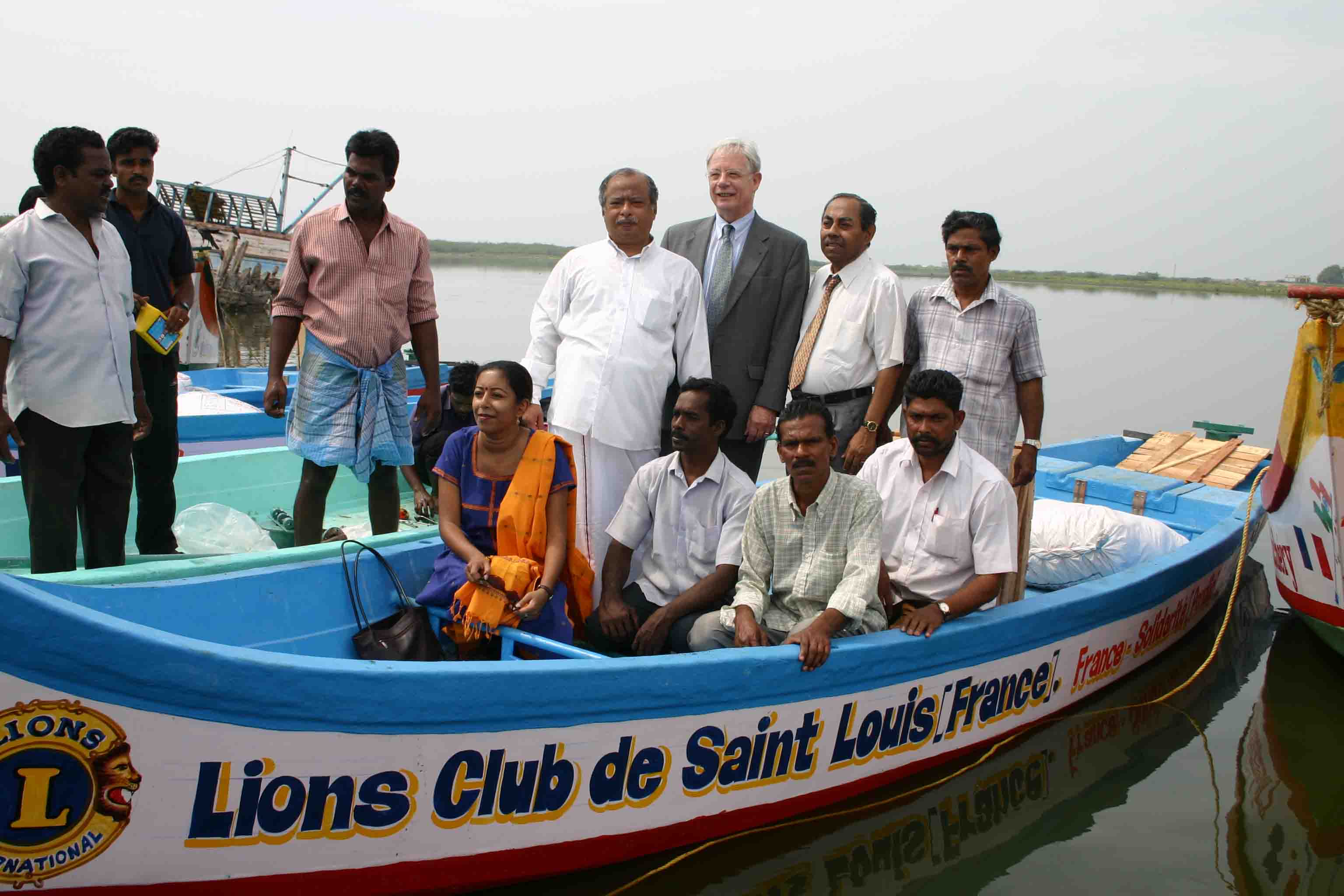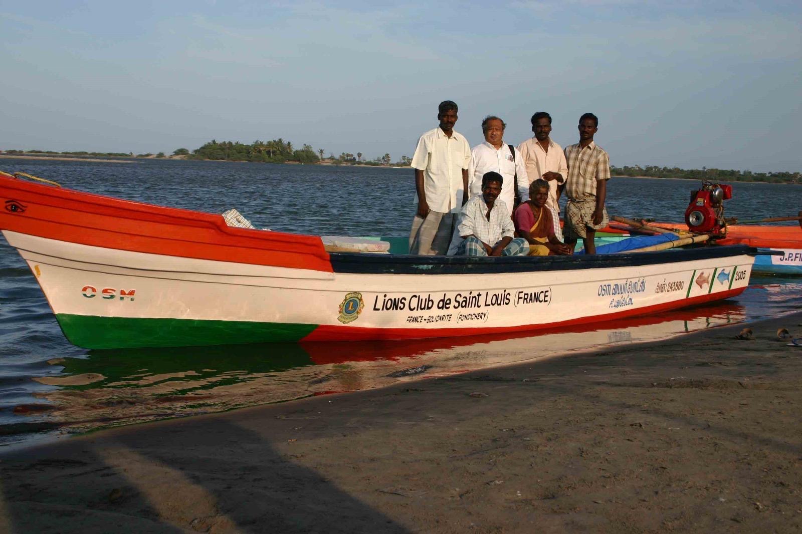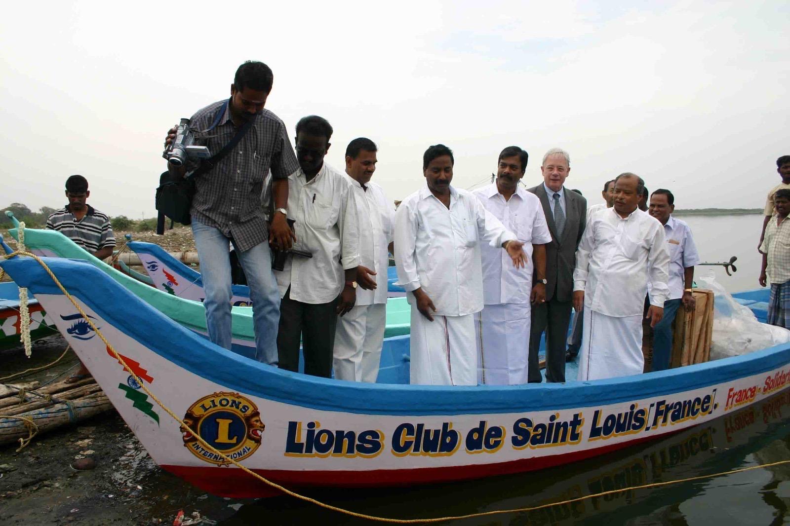 Grâce aux dons des habitants de la région frontalière, aux efforts du Lions de Saint-Louis et de tous ses partenaires, plusieurs embarcations de ce type ont pu être achetées pour les pêcheurs indiens, rescapés du tsunami.