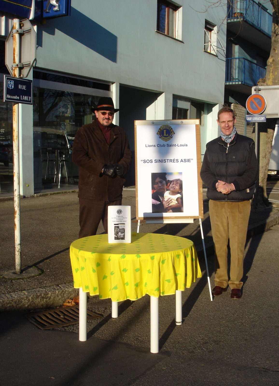 Avec l’aide précieuse de quelques membres, nous avons formé une petite commission animée par notre ami Noël Wolf. Très vite, les idées se sont transformées en actions : près de 80 urnes de collecte fabriquées à la main à partir de boîtes de chaussures, installées chez les commerçants, dans les écoles, dans les lieux de passage. Je me souviens encore du froid glacial de ce samedi 8 janvier où, avec d’autres membres, nous avons tenu un stand improvisé au marché. Et pourtant, les cœurs étaient chauds, les mains se tendaient, les sourires remplaçaient les mots. Ce jour-là, Saint-Louis a montré ce qu’était la générosité.